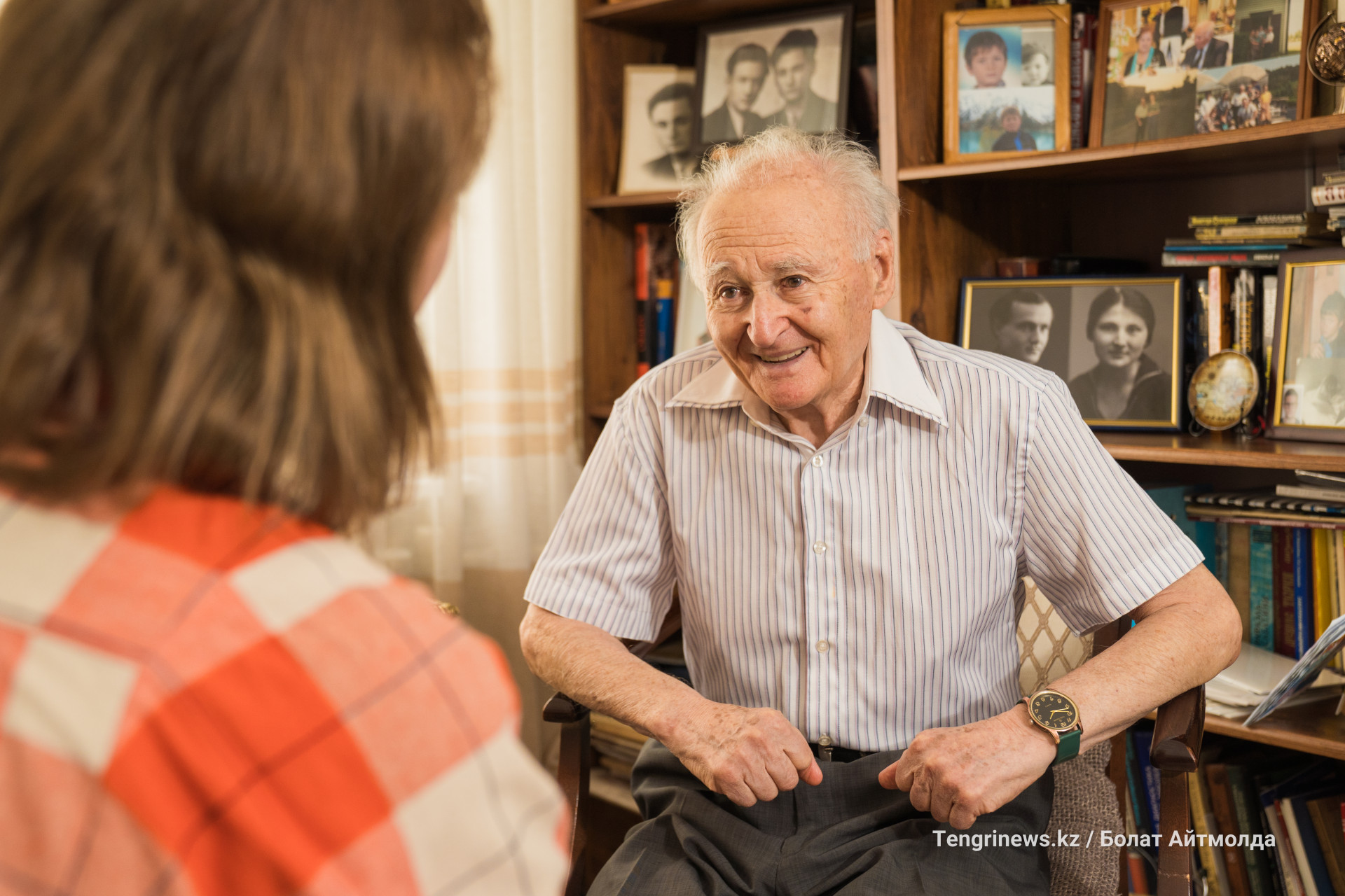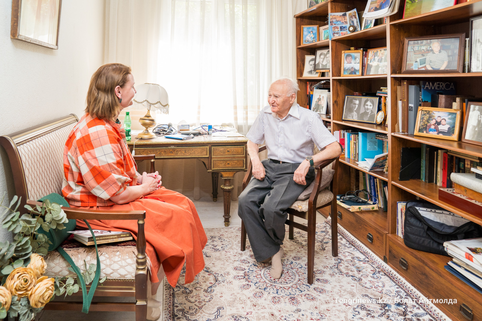 Журналист Оксана Акулова беседует с Михаилом Ефимовичем Зельцером. Фото: ©️ Болат Айтмолда