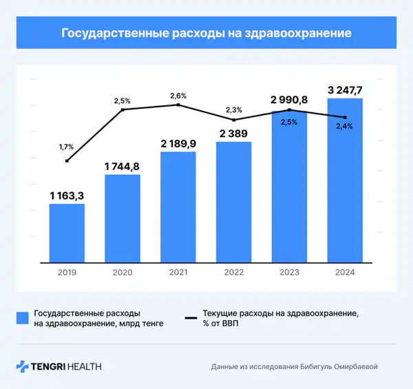 Согласно отчету главного эксперта Казахстанского института стратегических исследований при Президенте Бибигуль Омирбаевой, государственные расходы на здравоохранение действительно увеличиваются. Цифры из её отчёта превышают бюджет ФСМС, так как включают административные расходы и финансирование государственных программ, которые не входят в систему ОСМС. В целом, финансирование здравоохранения растёт.