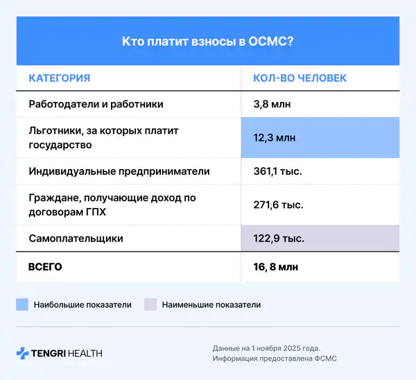 Порядка 3,5 миллиона человек остаются незастрахованными в ОСМС и не вносят взносы в фонд.