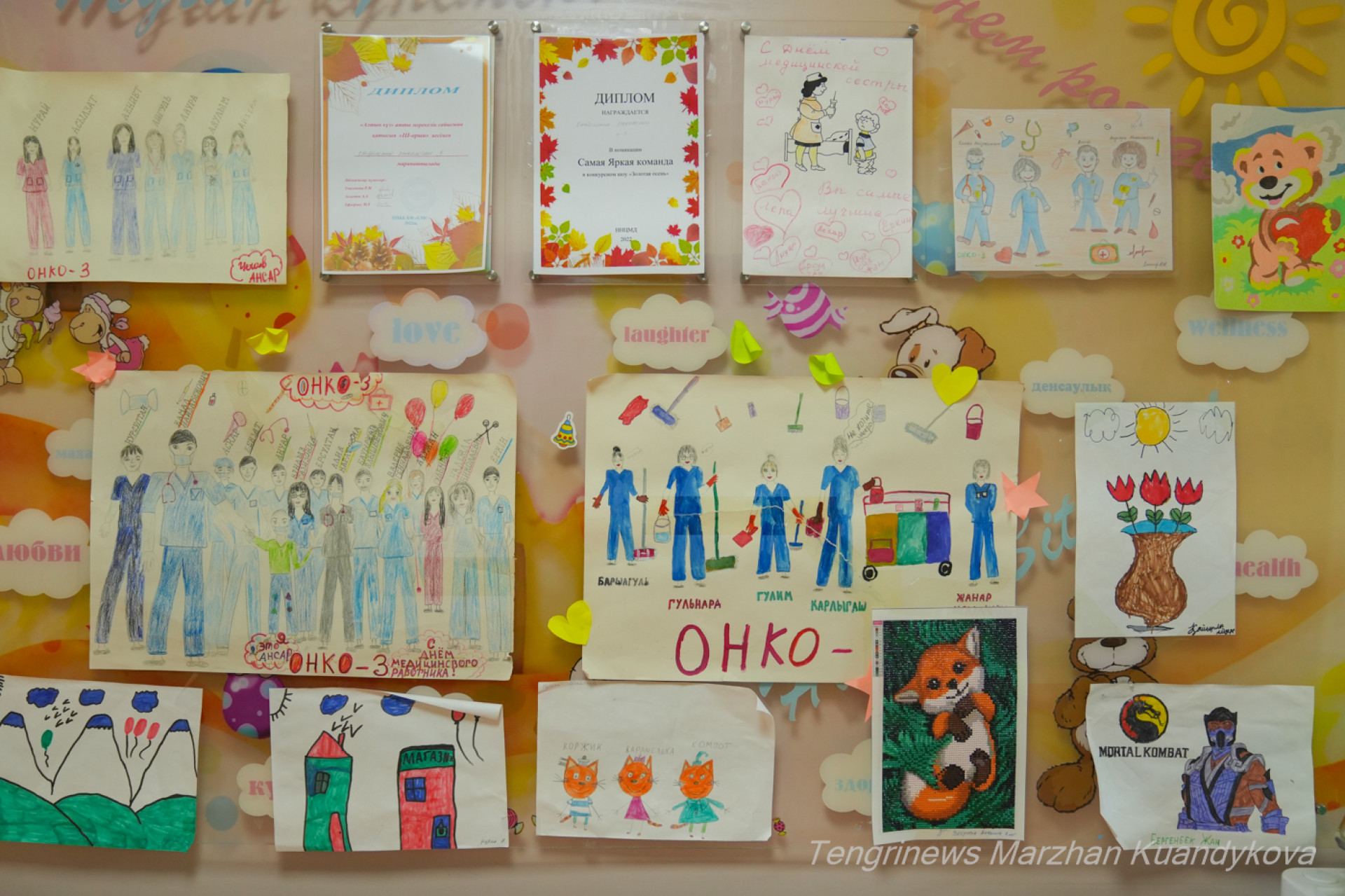 Рисунки маленьких пациентов Центра материнства и детства. Фото: Маржан Куандыкова.