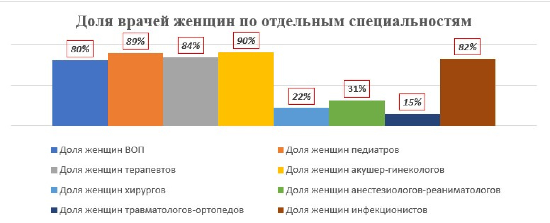 - врачи общей практики — 80% женщин,